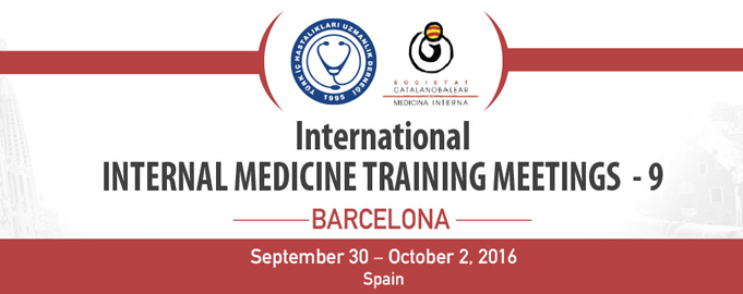 Türk İç Hastalıkları Uzmanlık Derneği tarafından düzenlenen Uluslararası İç Hastalıkları Eğitim Toplantıları - 9 İspanya'nın Barcelona şehrinde 30 Eylül 2016-02 Ekim 2016 tarihleri arasında düzenlenecektir.