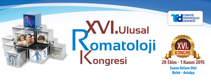 Türkiye Romatoloji Derneği tarafından düzenlenen XVI. Ulusal Romatoloji Kongresi 28 Ekim - 1 Kasım 2015 tarihleri arasında Sueno Deluxe Otel, Belek-ANTALYA'da gerçekleştirilecektir.
