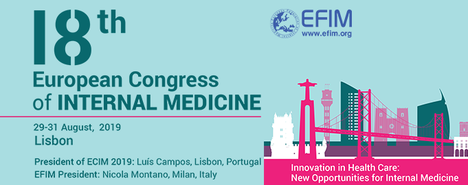 18. Avrupa İç Hastalıkları Kongresi Portekiz, Lizbon'da 29-31 Ağustos 2019 tarihleri arasında düzenlenecektir.