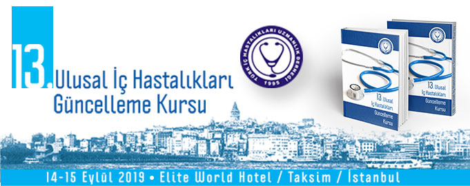 "13. İç Hastalıkları Güncelleme Kursu" 14-15 Eylül 2019 tarihlerinde Elite World Hotel, Taksim, İstanbul'da yapılacaktır. Her yıl düzenlenmekte olan bu kurslar, özellikle yeterlilik sınavları öncesinde bilgilerimizi gözden geçirmek ve tazelemek için değerli bir fırsattır.